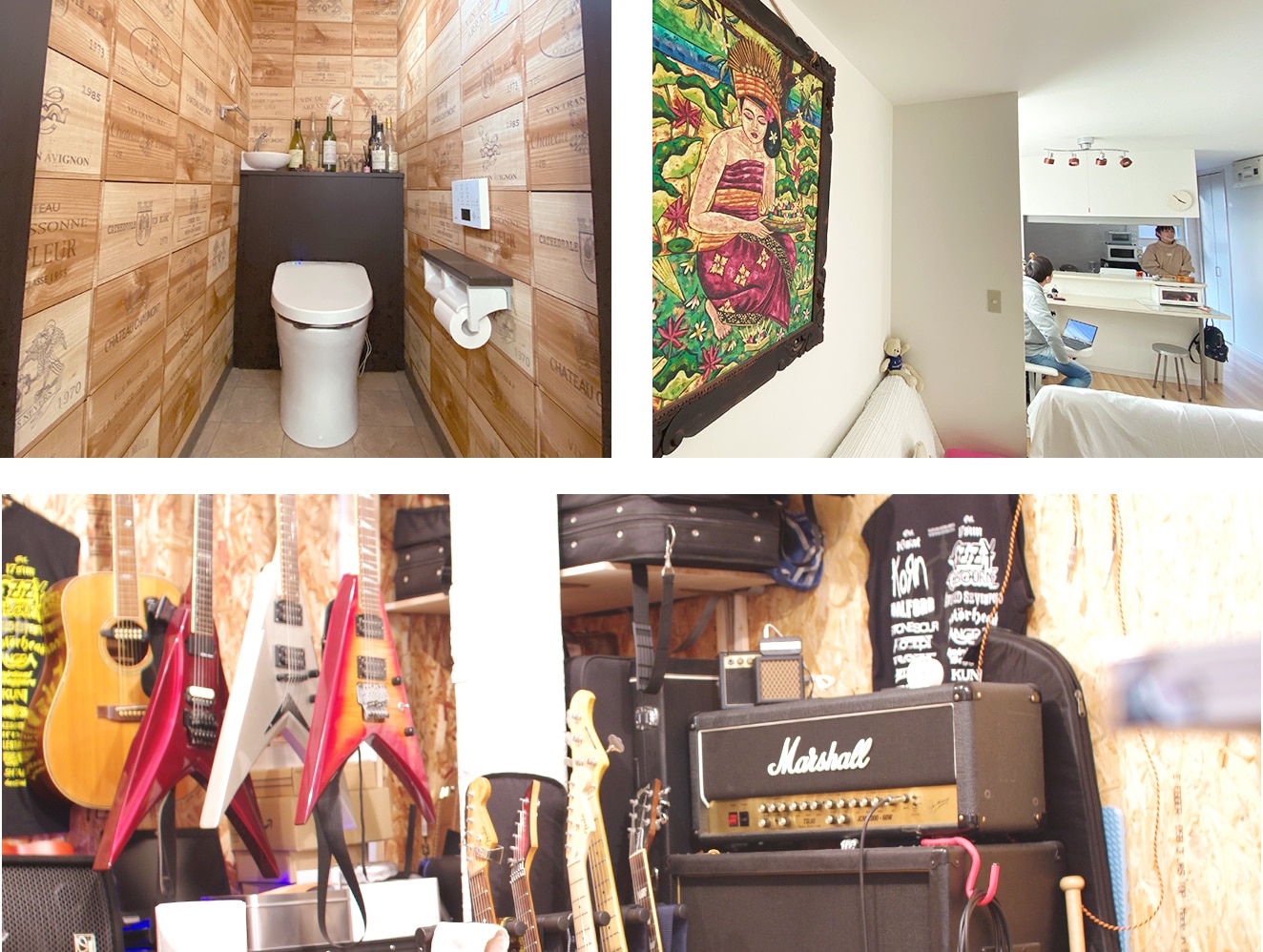 ご夫婦で楽器演奏をしたり、仲間が集って演奏会を楽しんだり、 時にはこもってお仕事もできる、 まるで音楽スタジオの様な雰囲気の漂う、硬派で男前な空間となりました。